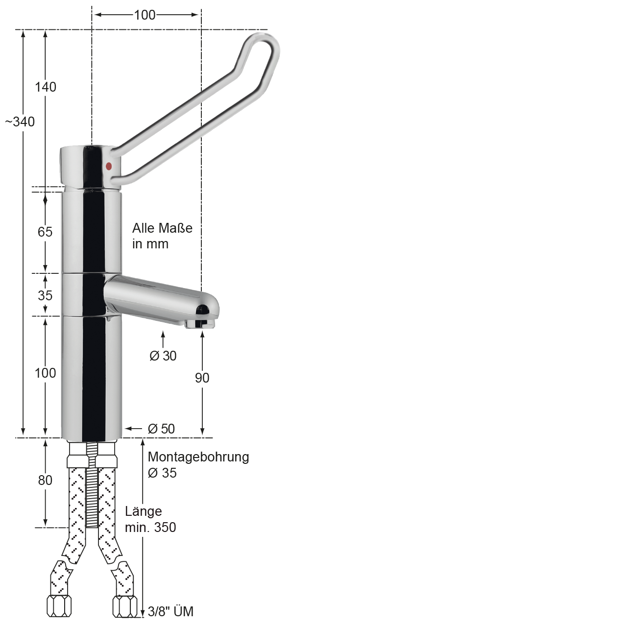 - mit langem verchromten Bedienhebel aus Ganzmetall
