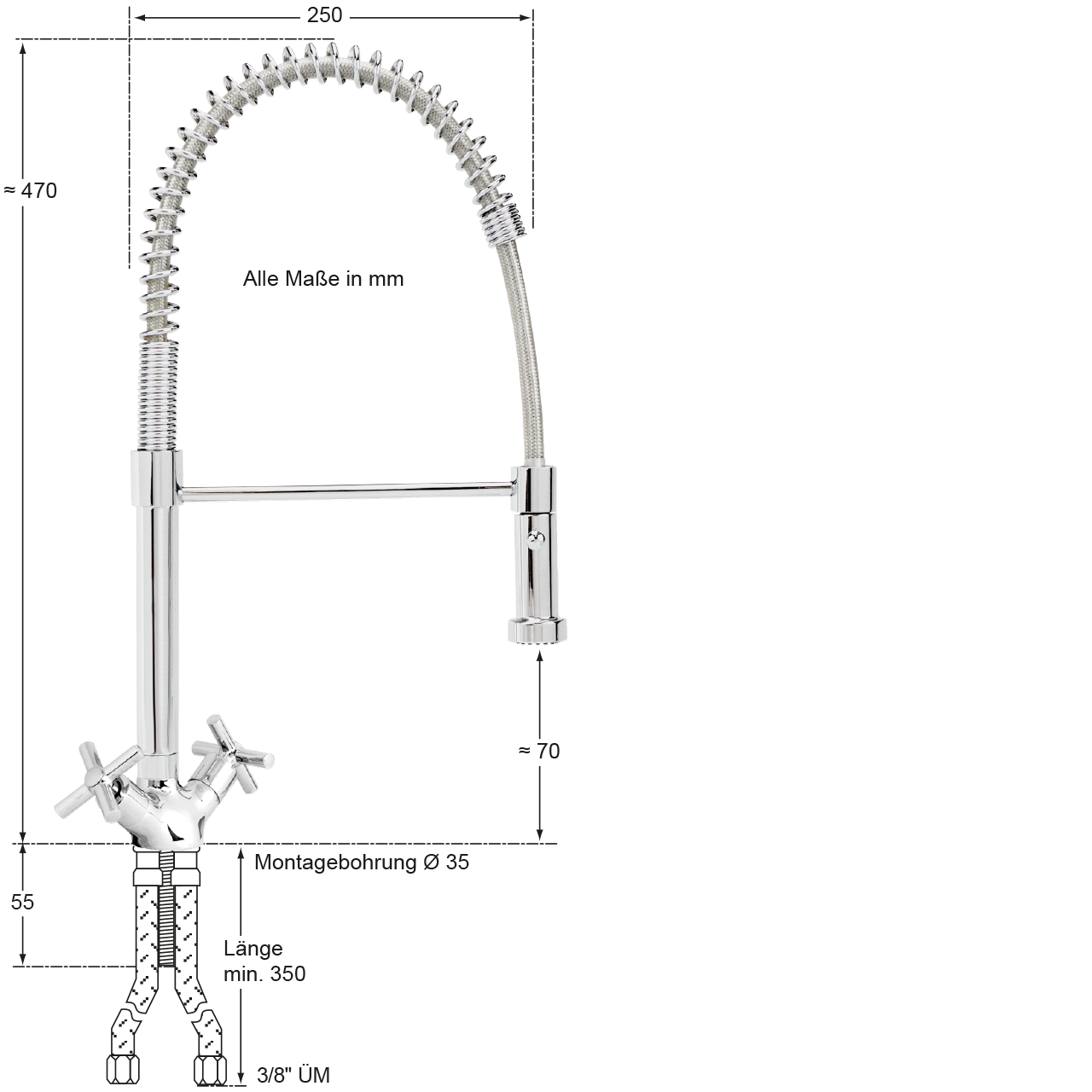 - Armaturenkörper,Feder mit Schlauch, Brausehaken und Umstellbrause