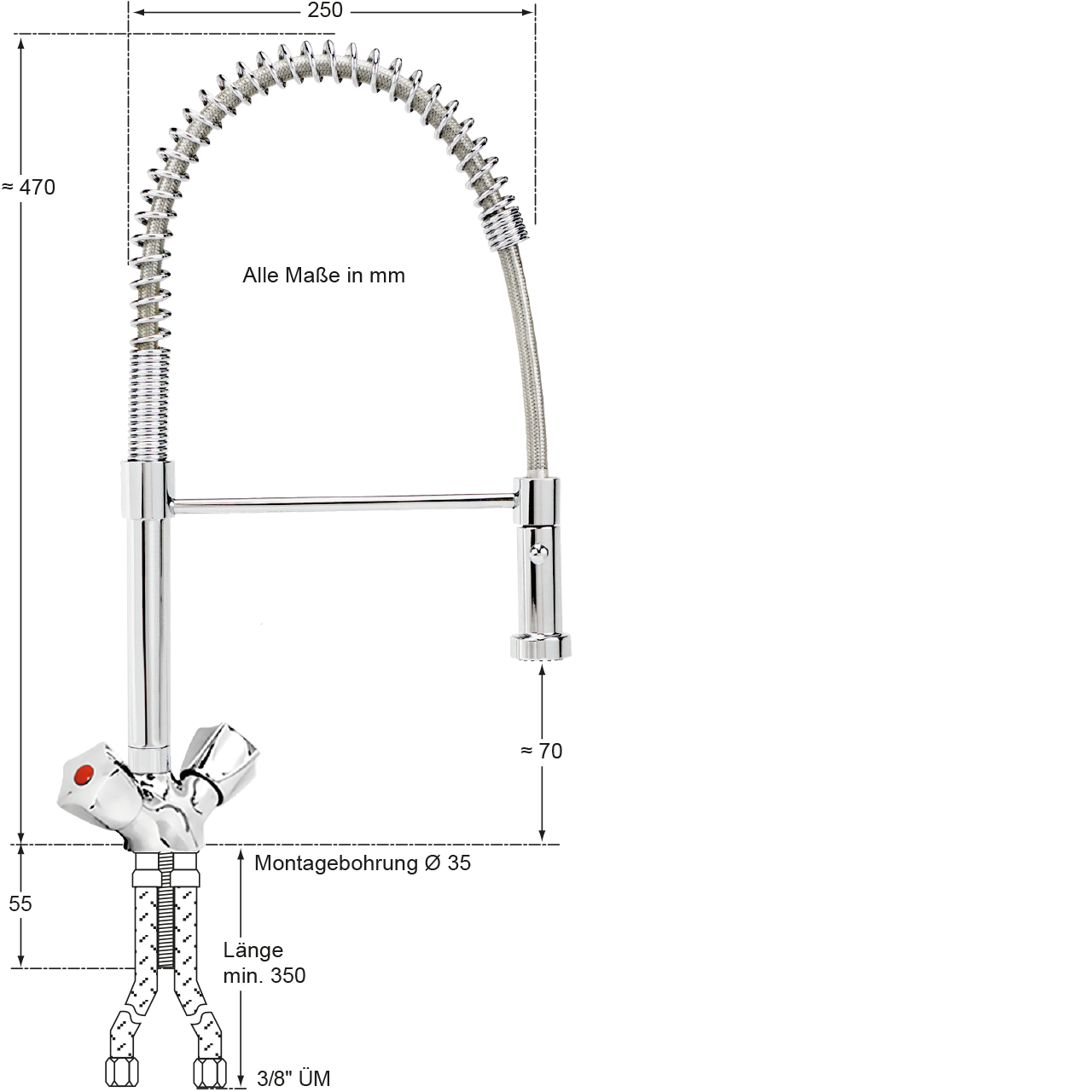 - Armaturenkörper,Feder mit Schlauch, Brausehaken und Umstellbrause