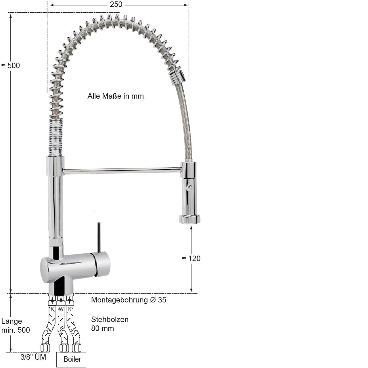 Bitte prüfen Sie vor dem Anschließen der Armatur die Funktionstüchtigkeit der drei Anschlussleitungen. Der Warmwasser-Zulauf in die Armatur muss einen ständigen freien Durchgang haben. Man kann das durch blasen in die Leitung ganz einfach testen. Der Kaltwasser-Zulauf vom Eckventil gibt hingegen die Luft nur frei, wenn man das Kaltwasserventil an der Armatur öffnet. Der Kaltwasser-Zulauf in den Speicher gibt den Luftstrom erst frei wenn das Warmwasserventil geöffnet wird.
