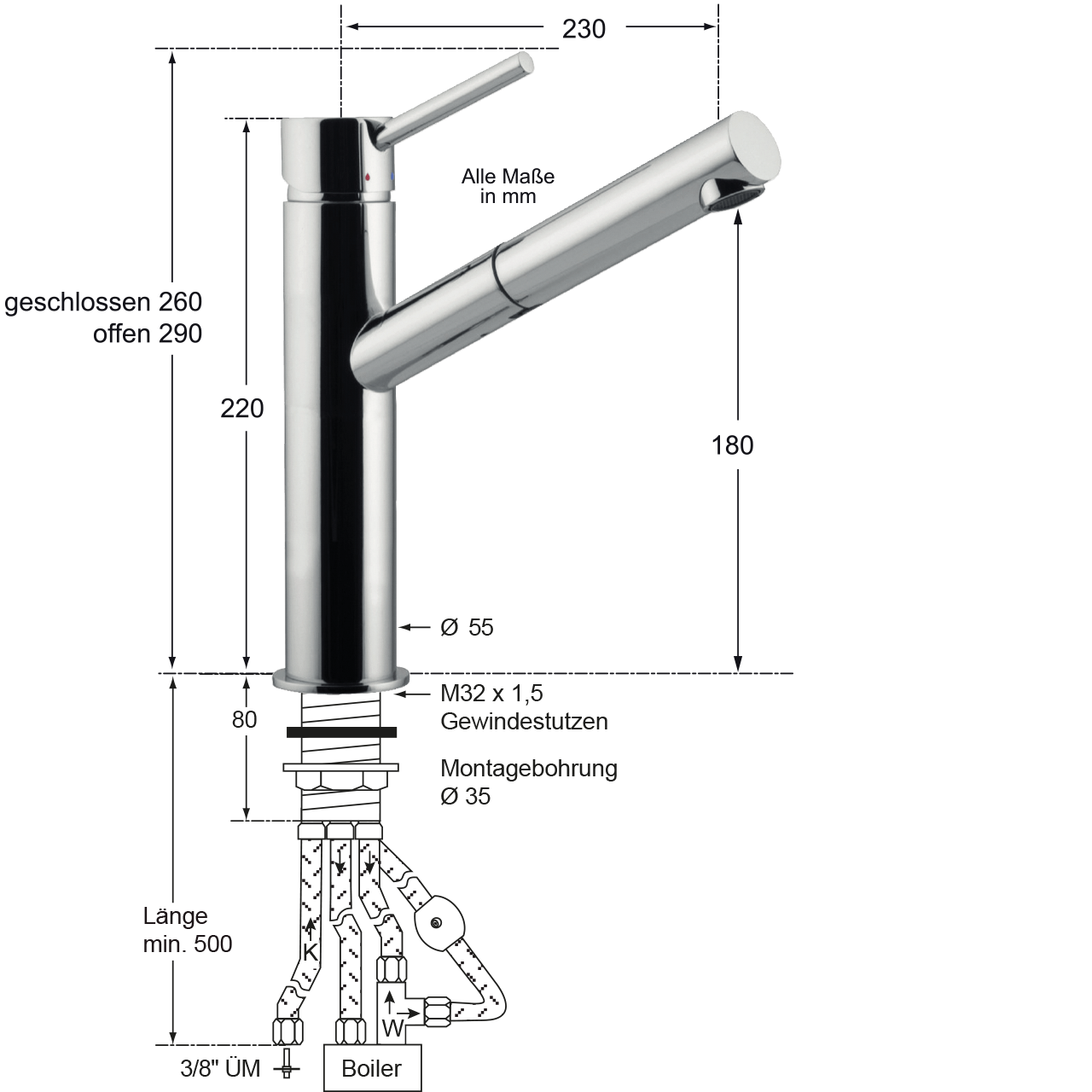 - Ausziehbare Brause mit verchromtem Messingkörper
