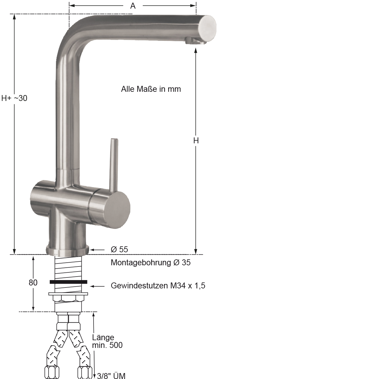 - Massiver Rohr-Schwenkauslauf 360°, Ø 30 mm