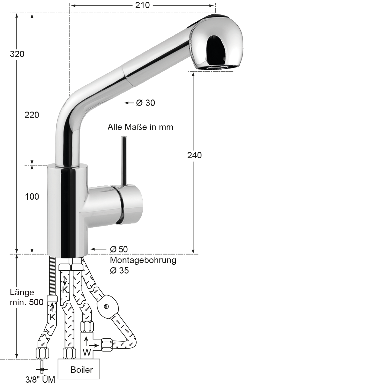 - Wassermengen- und Wassertemperaturbegrenzung möglich