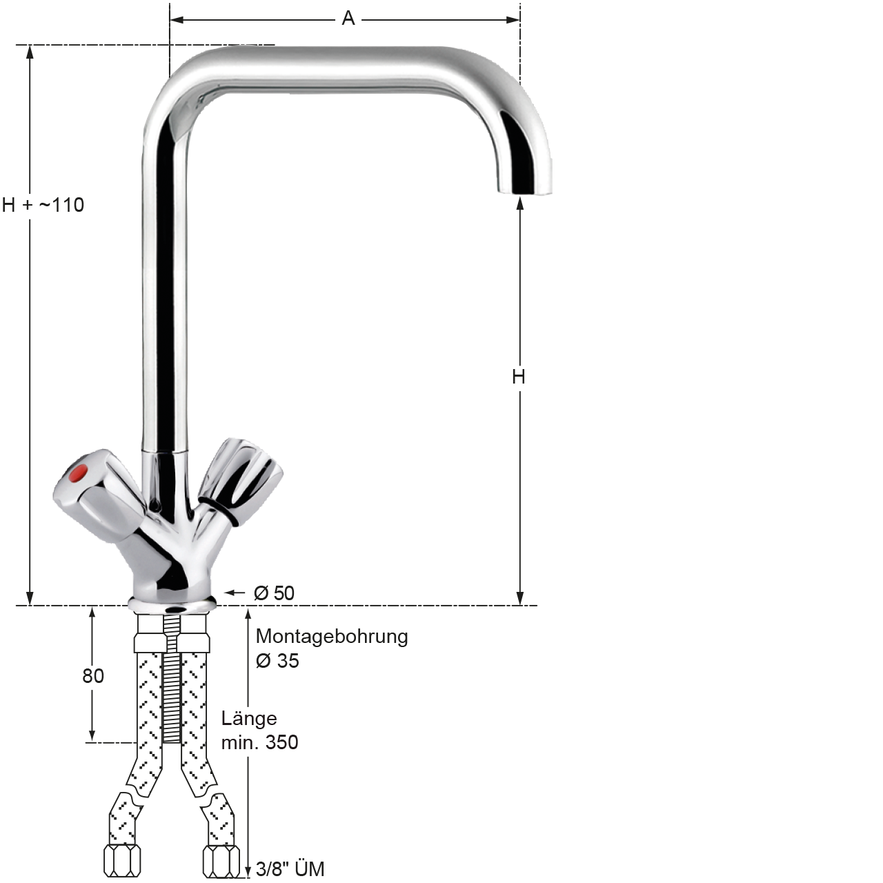 - Edelstahl-Schläuche mit 3/8" ÜM