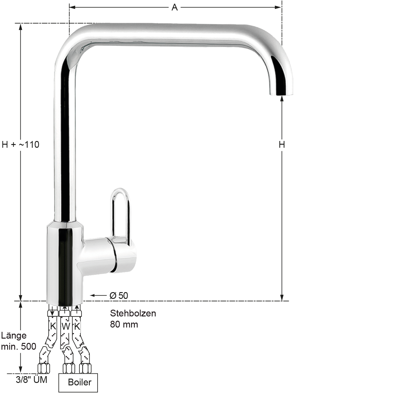 - Edelstahl-Schläuche mit 3/8" ÜM