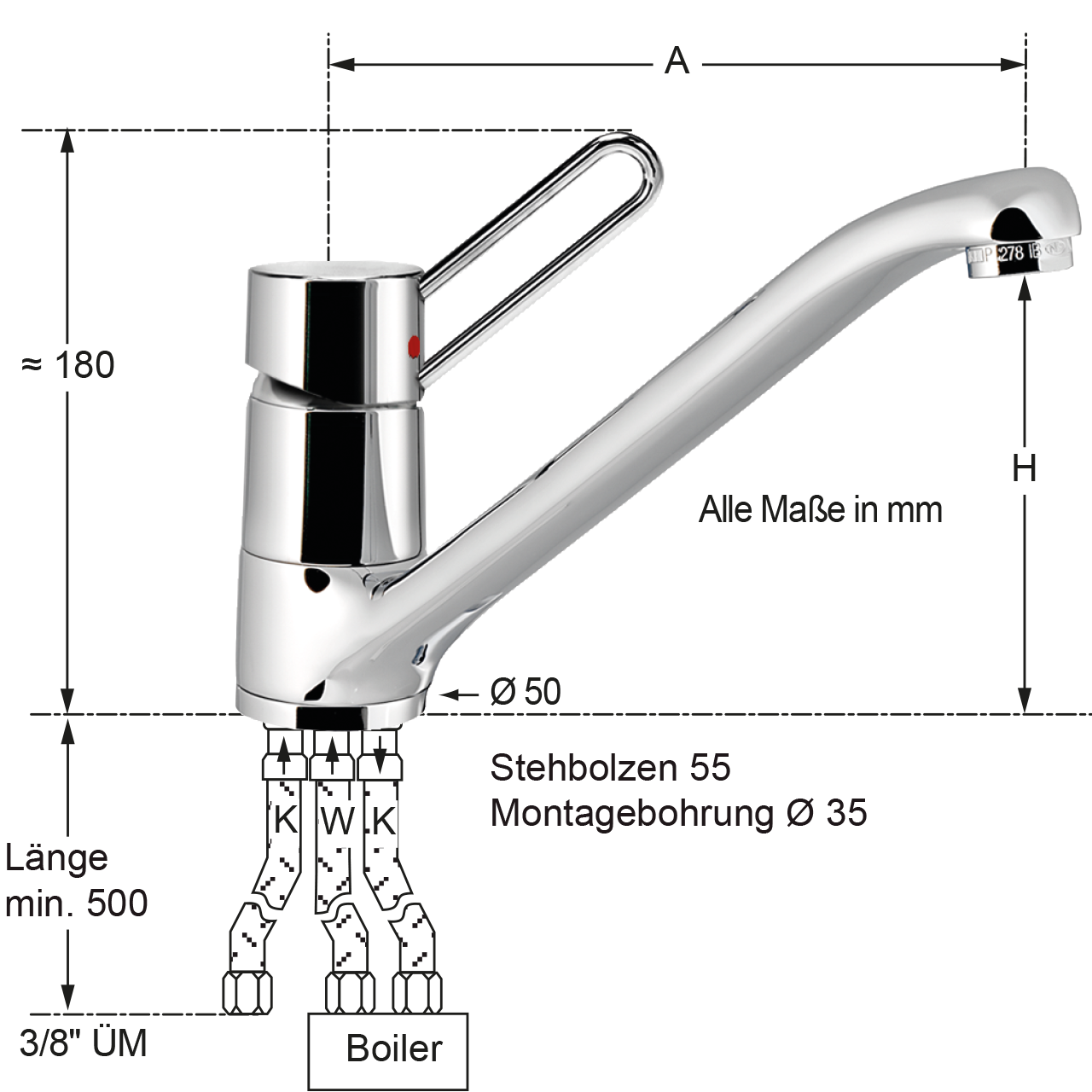 - Wassermengen- und Wassertemperaturbegrenzung möglich