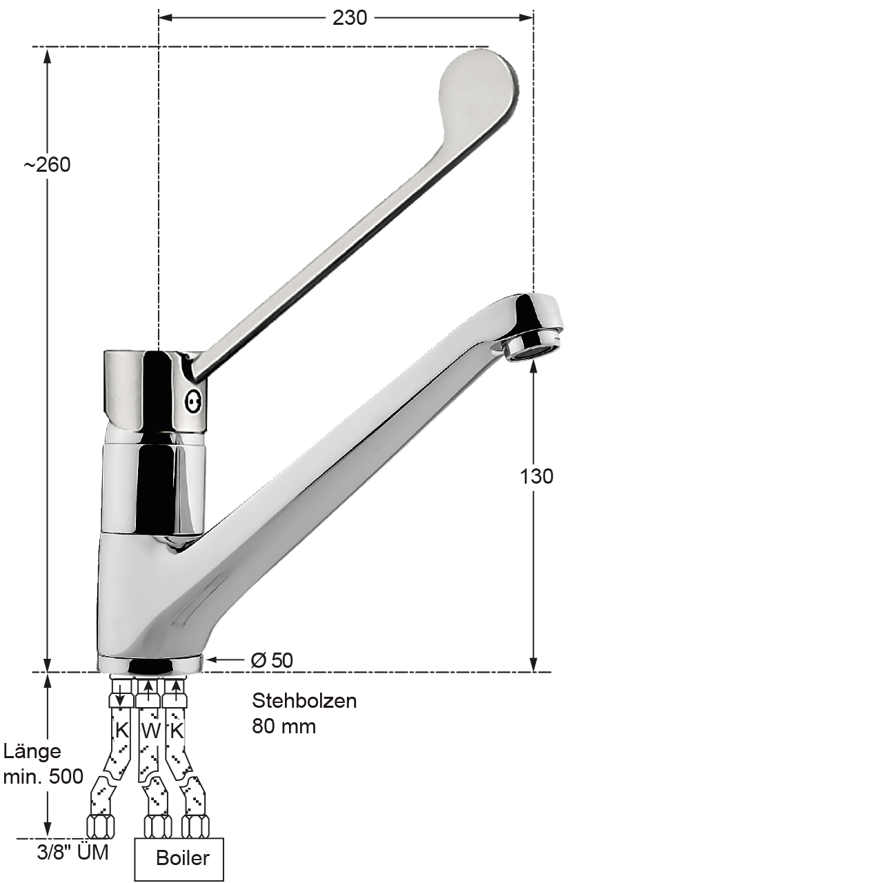 - Hochdruck-Edelstahlschlauch L 500 mm