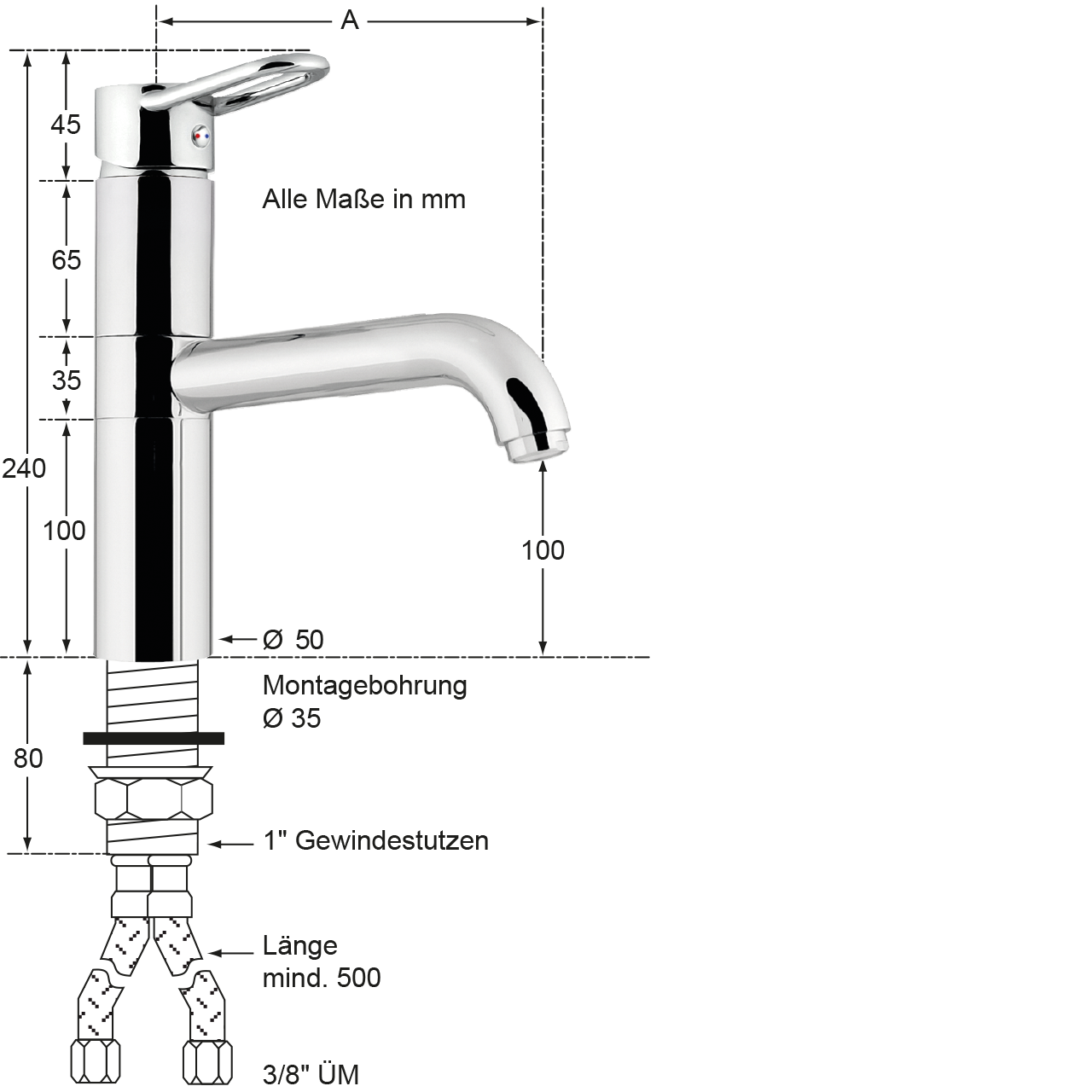 • Hochdruck-Edelstahlschlauch L 500 mm