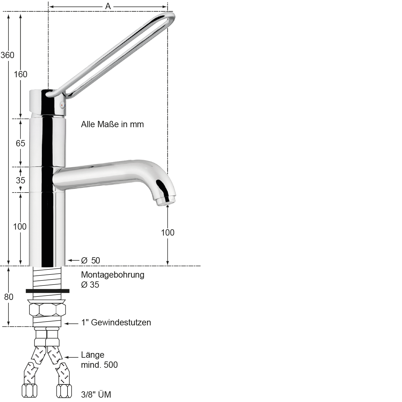 - mit Rohrform Schwenkauslauf 360°schwenkbar