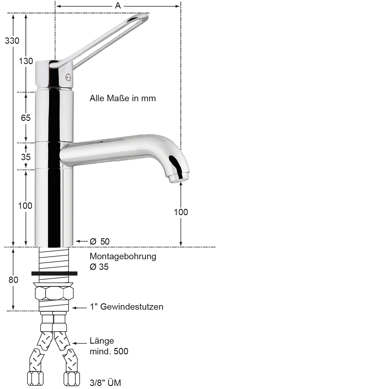 - Hochdruck-Edelstahlschlauch L 500 mm