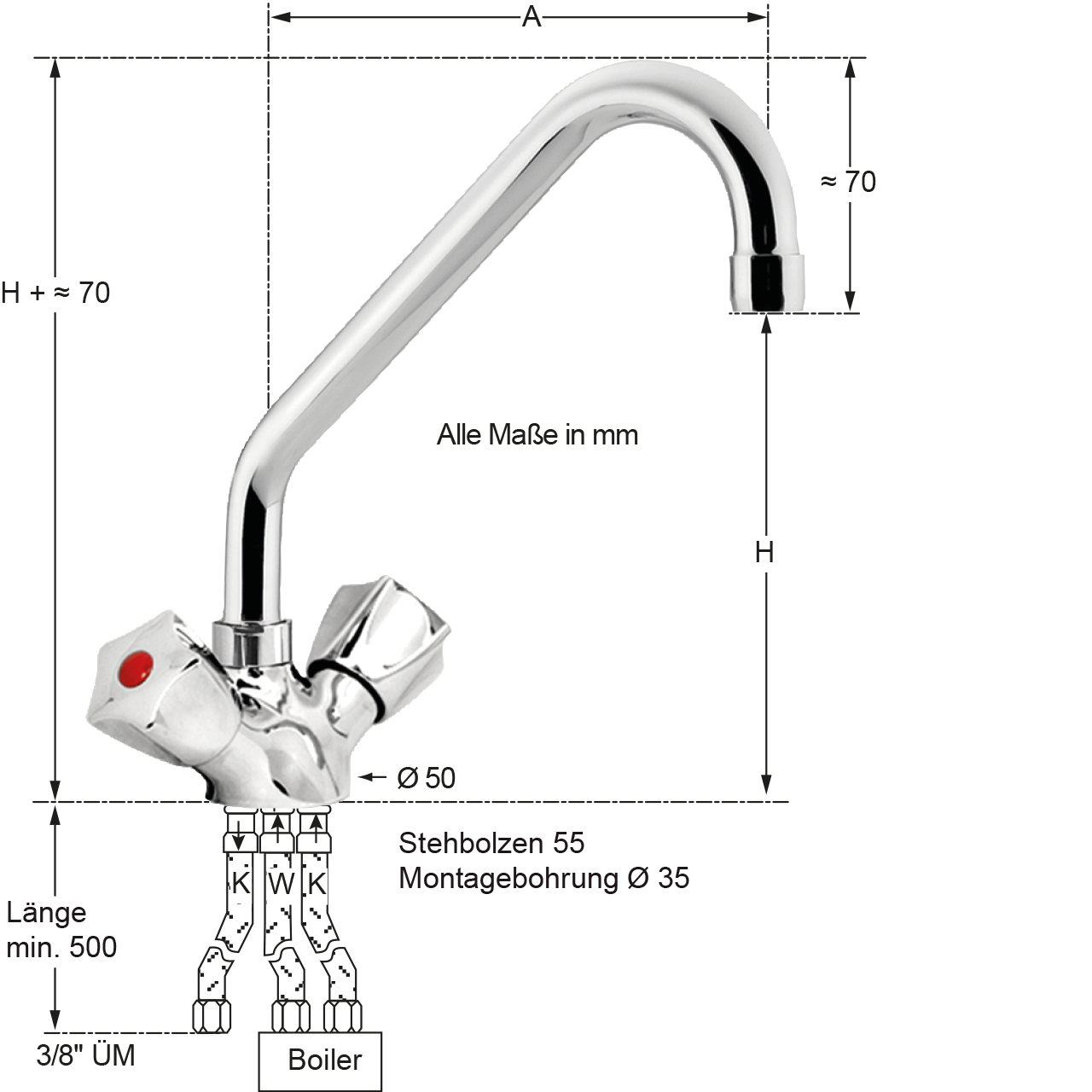 Produktinformationen "vanio Spültischbatterie 1/2" ND"