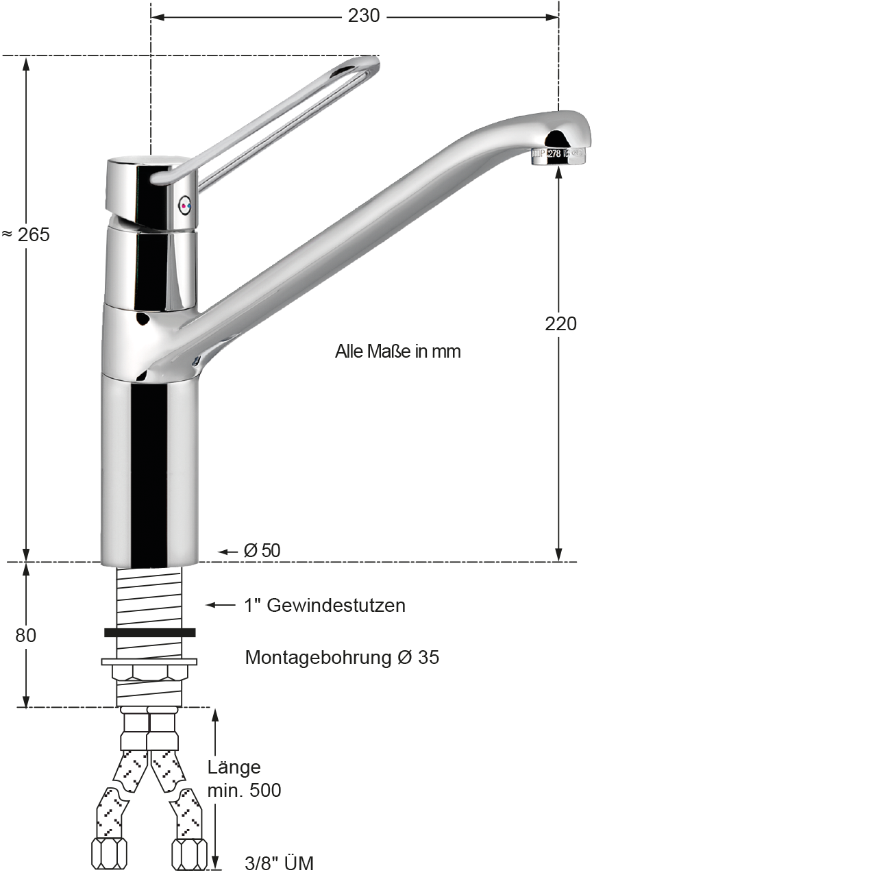 - Hochdruck-Edelstahlschlauch L 500 mm