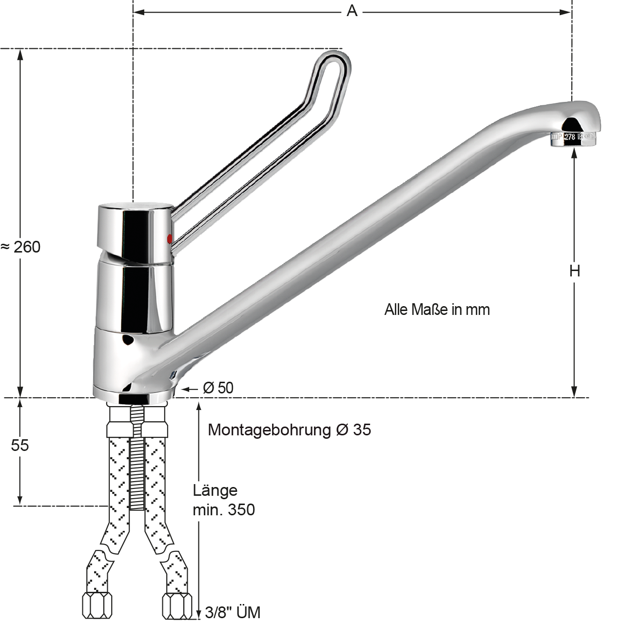 - Hochdruck-Edelstahlschlauch L 500 mm