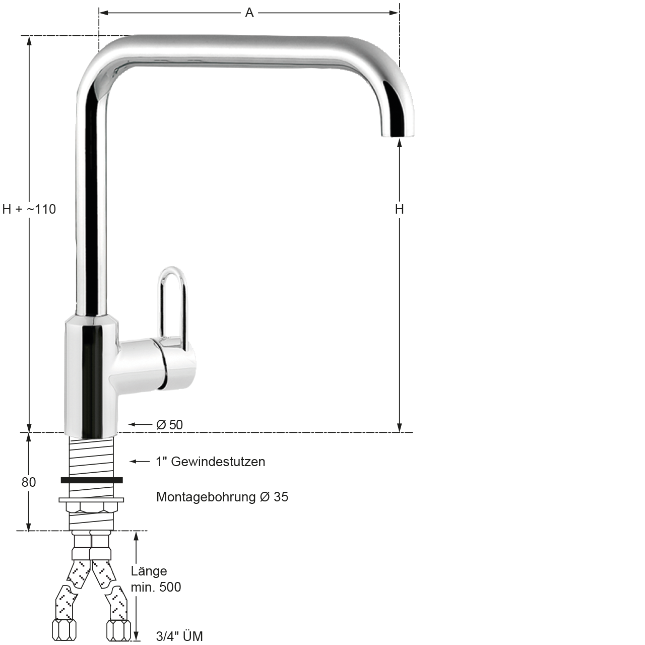 - Edelstahl-Schläuche mit 3/4" ÜM