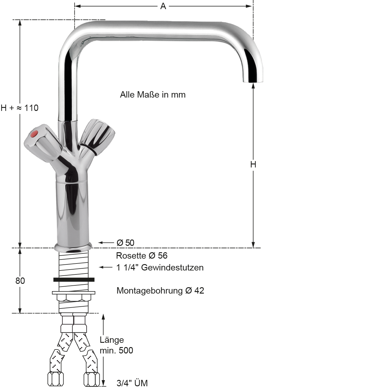- Edelstahl-Schläuche mit 3/4" ÜM
