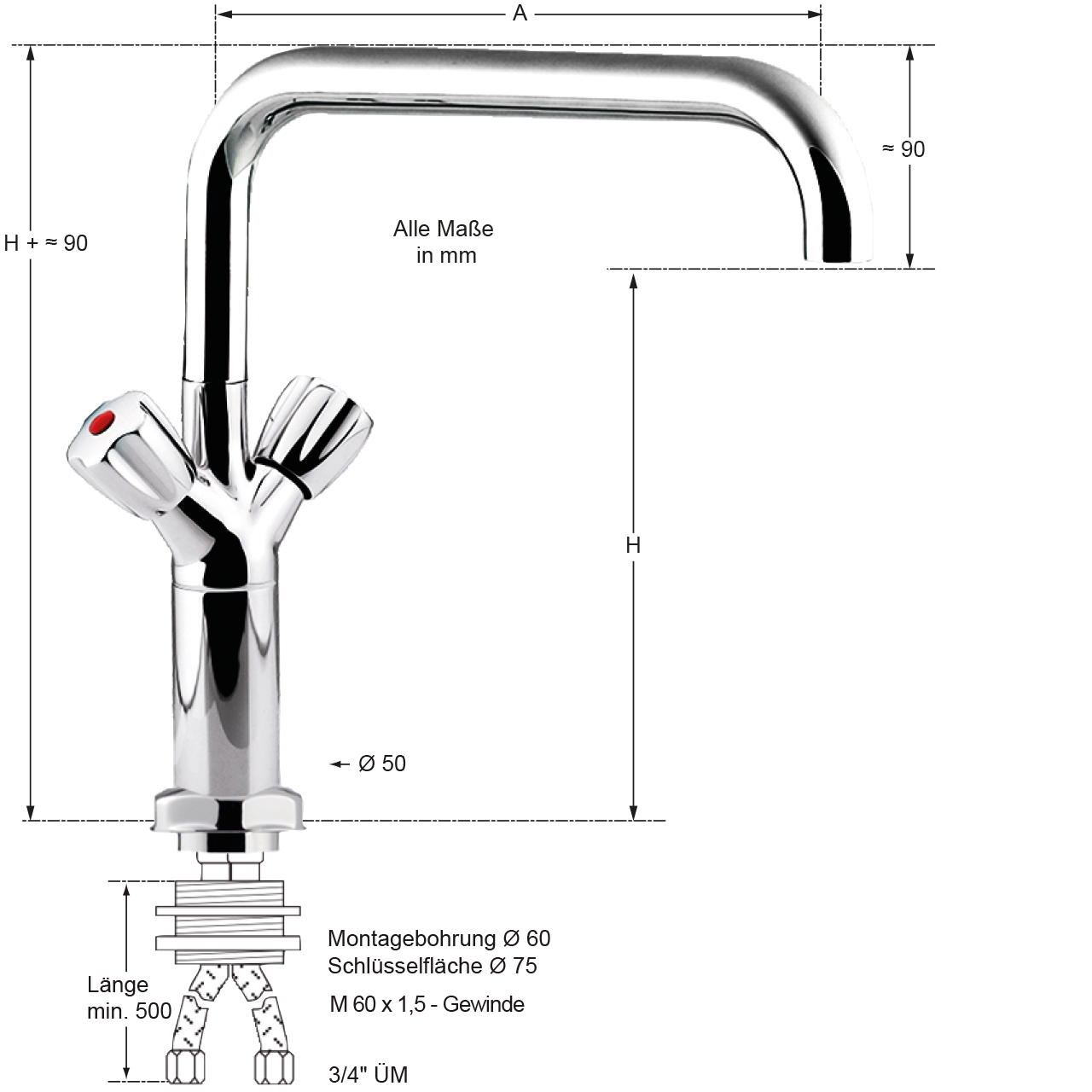 Besonderheit: Befestigung von oben, Schwenkbarer Auslauf