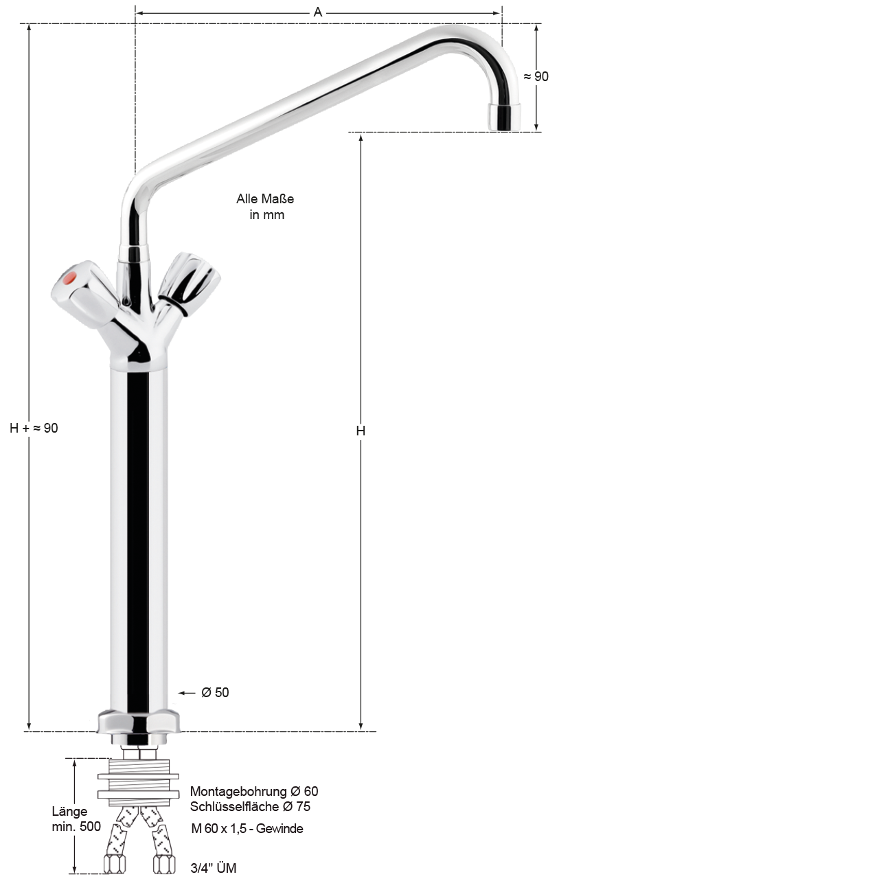 | Besonderheit: | Befestigung von oben, Schwenkbarer Auslauf |
