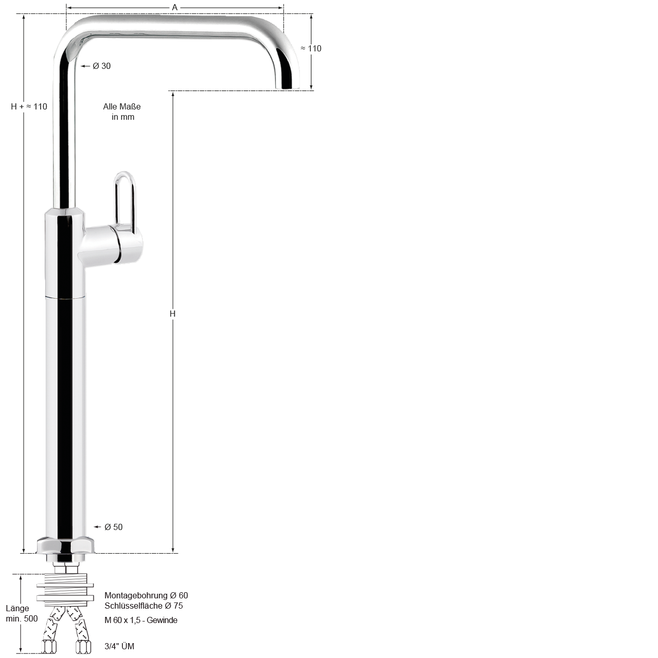 Besonderheit: Befestigung von oben, Schwenkbarer Auslauf