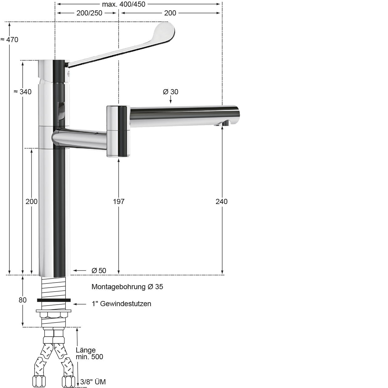 • Hochdruck-Edelstahlschlauch L 500 mm