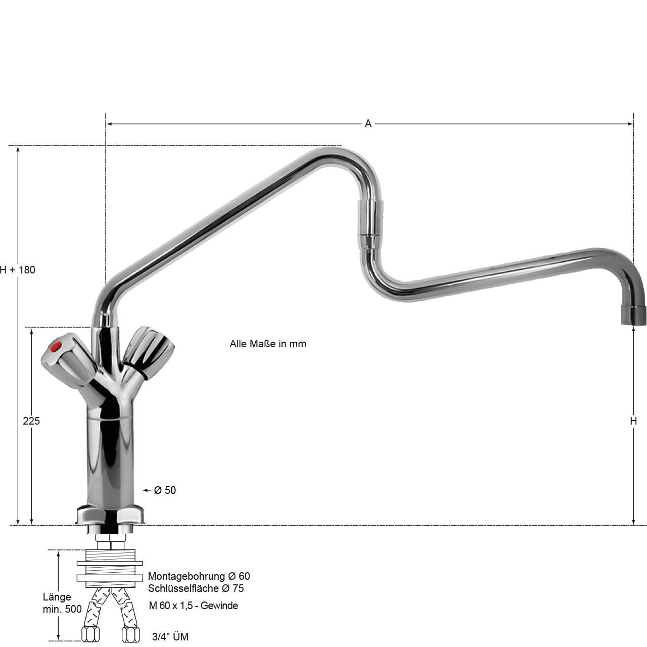 | Besonderheit: | Befestigung von oben, Gelenk-Schwenkauslauf |