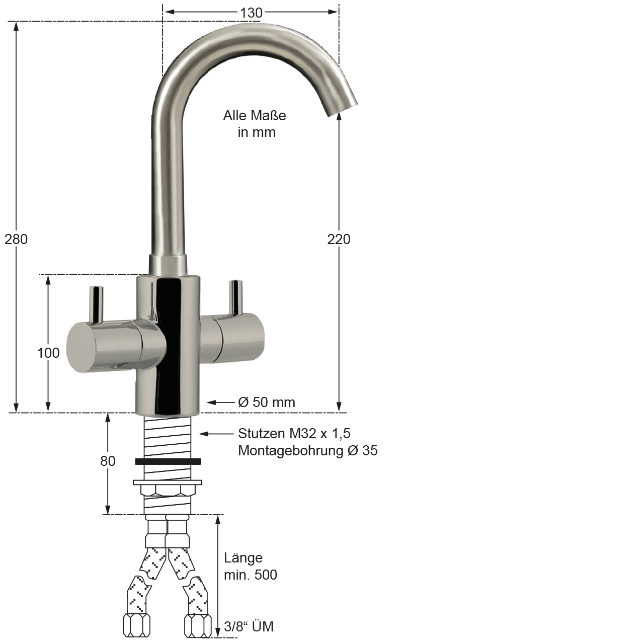 - Edelstahl-Schläuche mit 3/8" ÜM