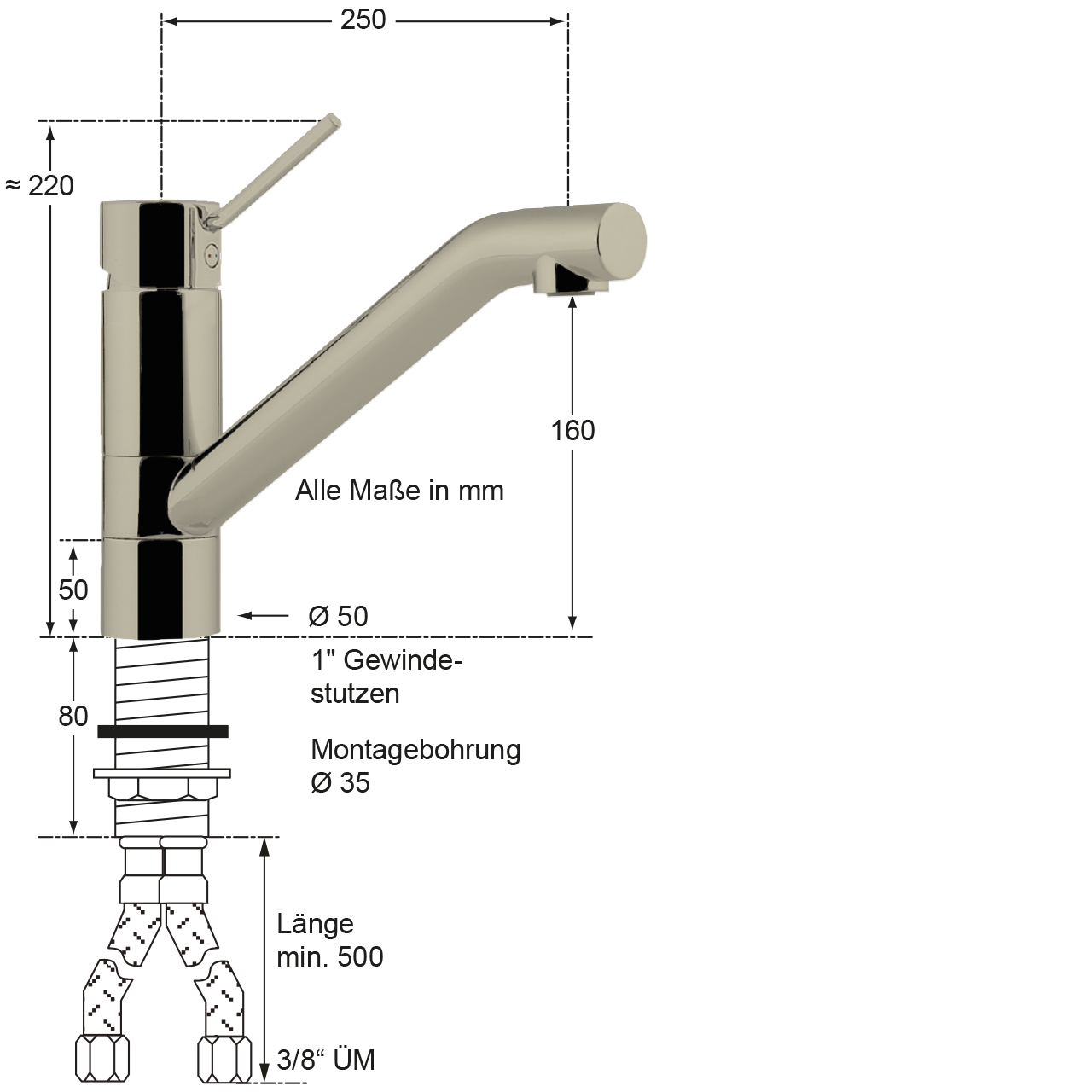- Hochdruck-Edelstahlschlauch L 500 mm