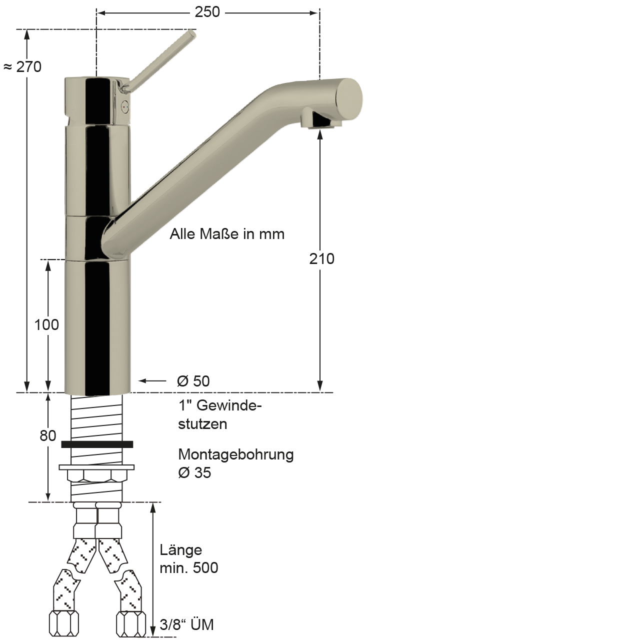 - Hochdruck-Edelstahlschlauch L 500 mm