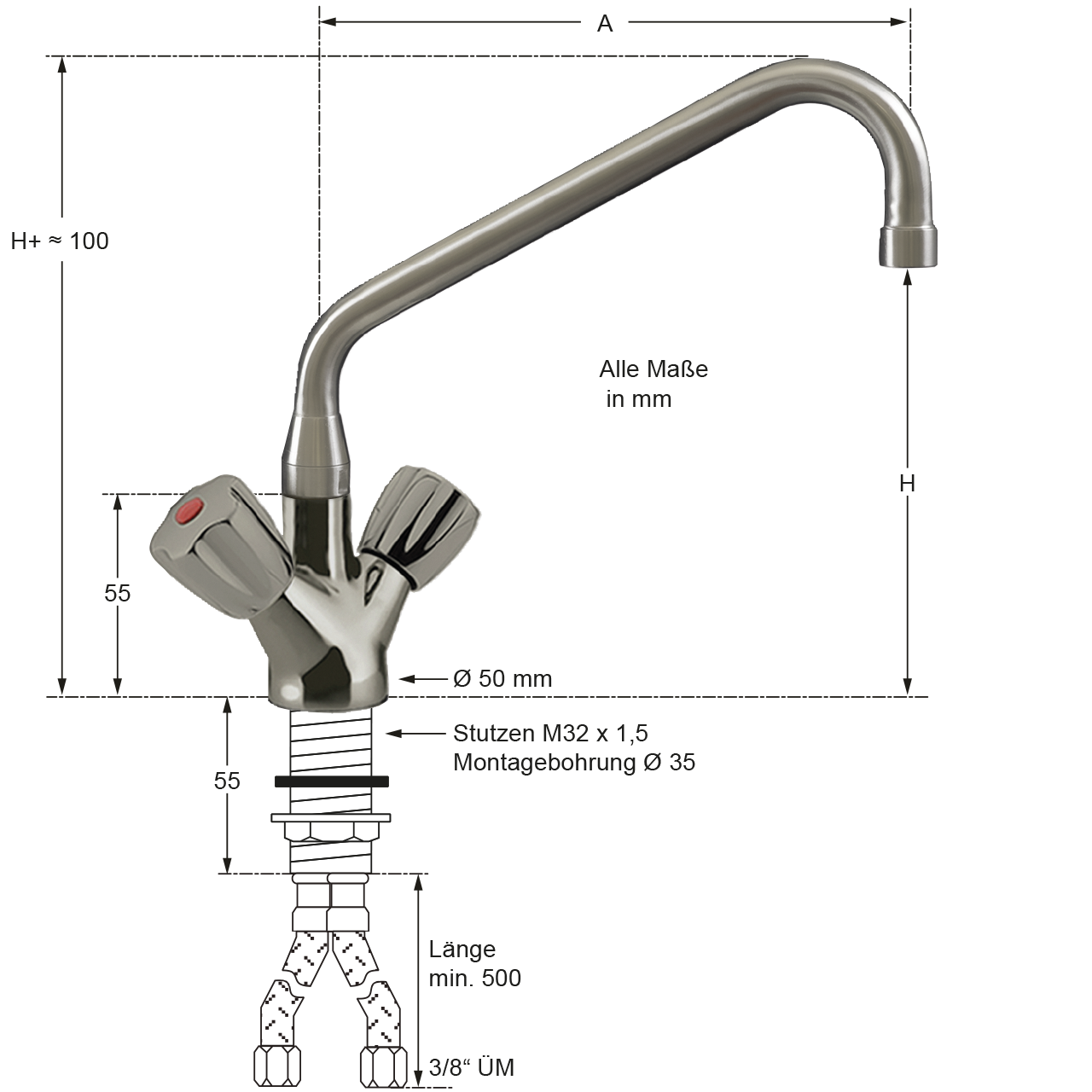 - Edelstahl-Schläuche mit 3/8" ÜM