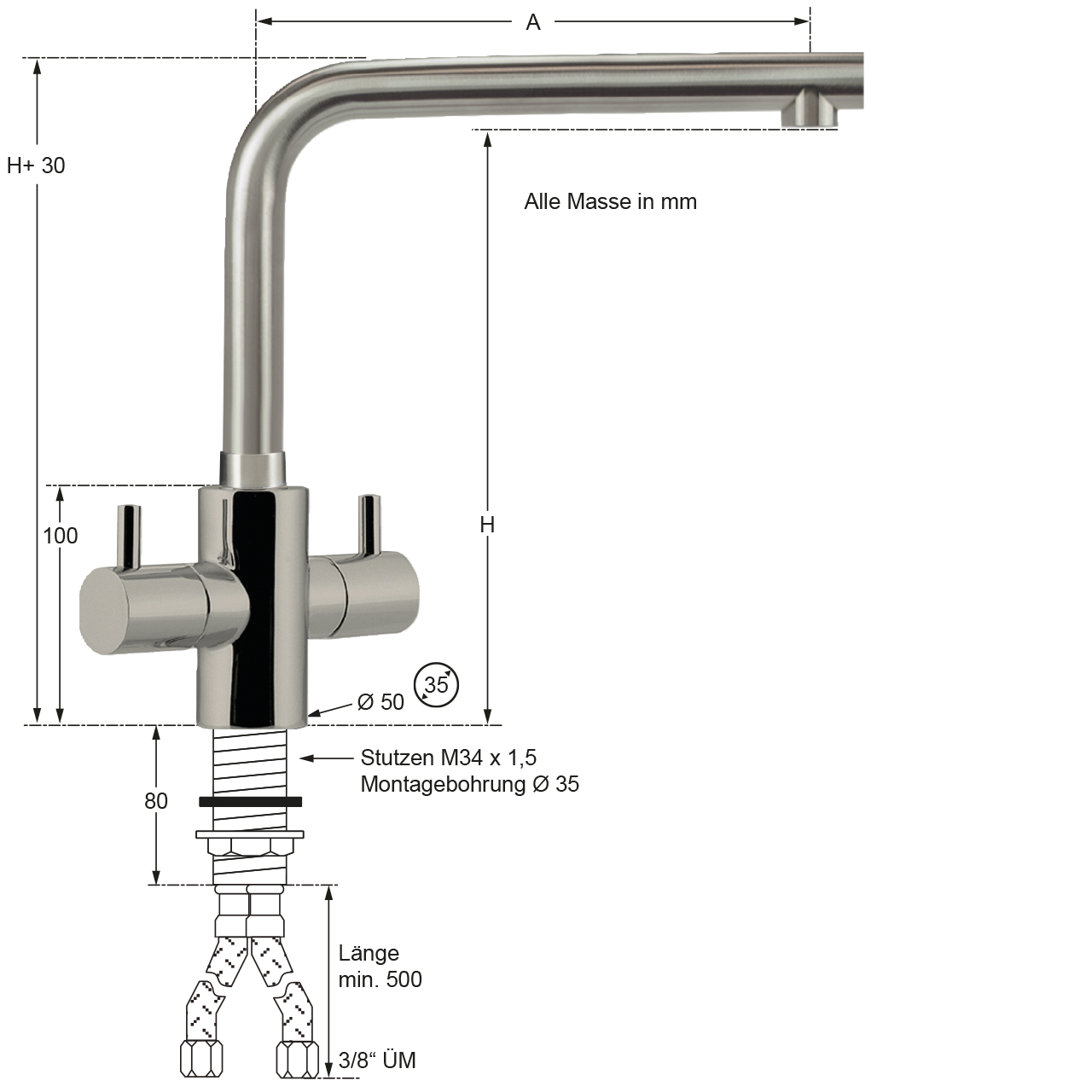 - Edelstahl-Schläuche mit 3/8" ÜM