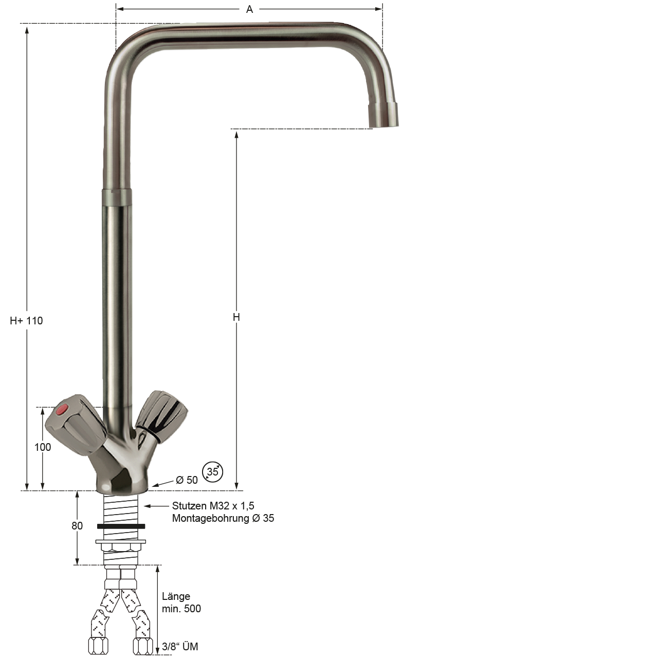 Montagebohrung: Ø 35 mm