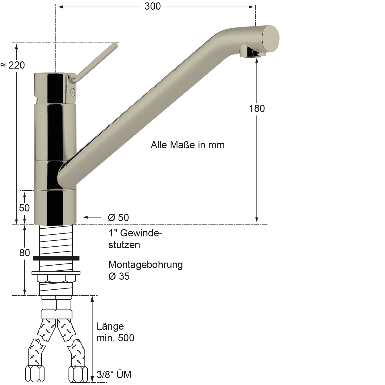 - Hochdruck-Edelstahlschlauch L 500 mm