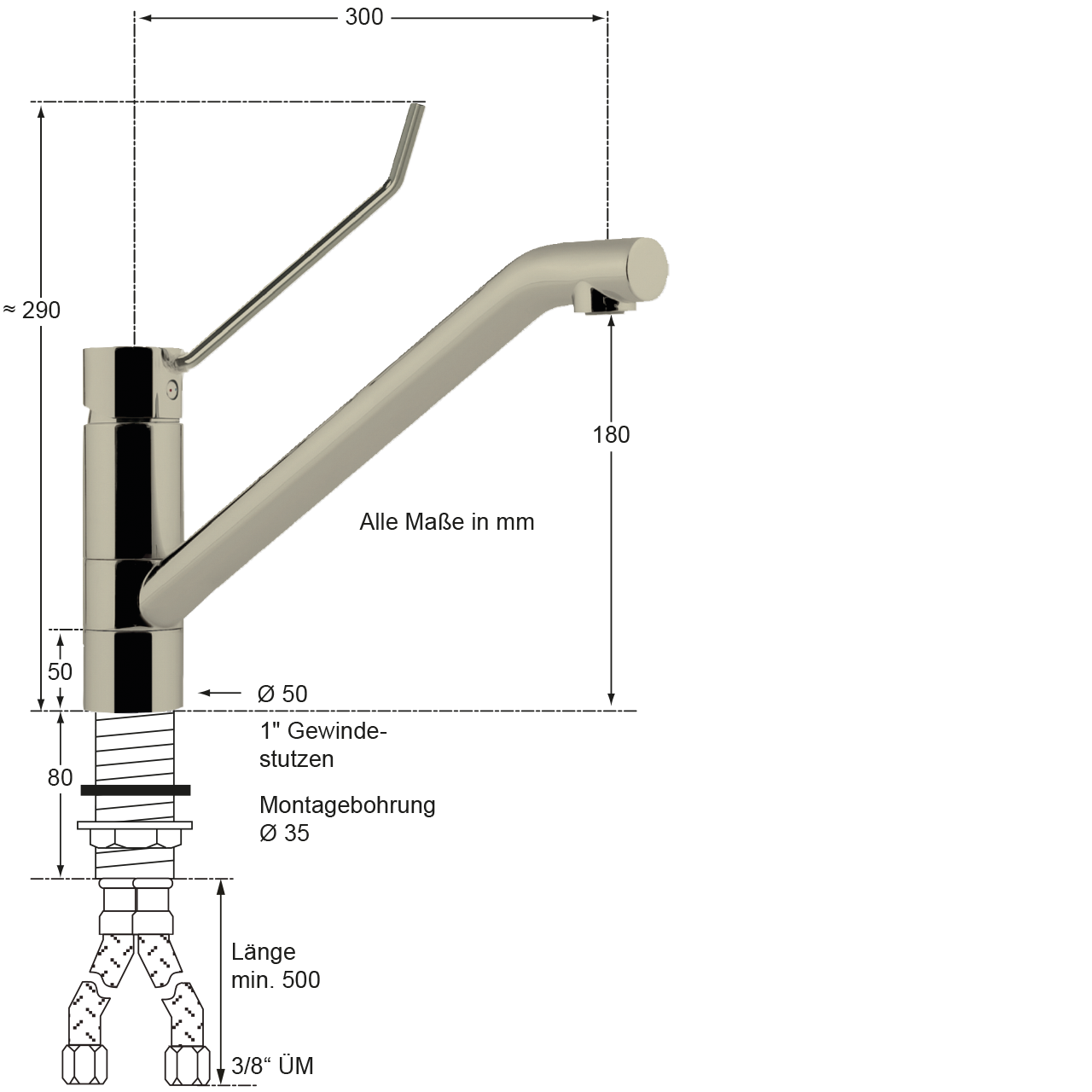 - Hochdruck-Edelstahlschlauch L 500 mm