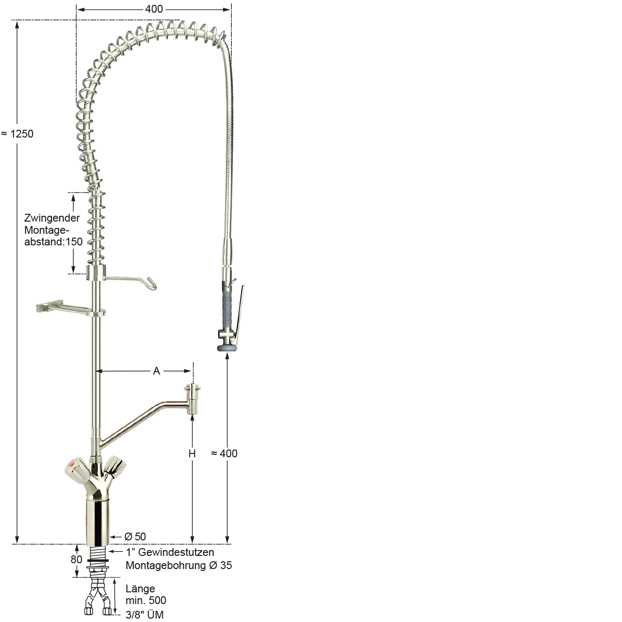 - Armaturenkörper, Brause, Hebel, Standrohr, Standrohrhalter, Brauseeinhängehaken, Federhalter, Tragfeder, Gelenkadapter komplett aus poliertem Edelstahl