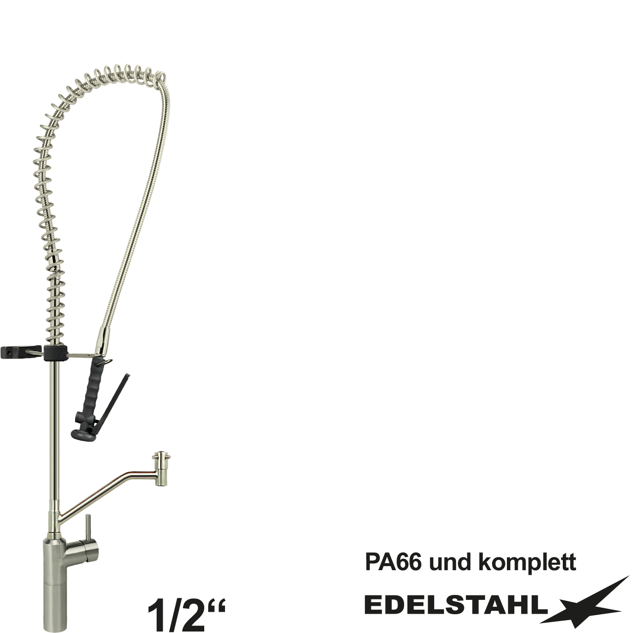 - Armaturenkörper, Brause, Hebel, Standrohr, Standrohrhalter, Brauseeinhängehaken, Federhalter, Tragfeder, Gelenkadapter komplett aus poliertem Edelstahl