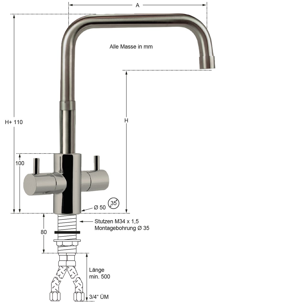 - Edelstahl-Schläuche mit 3/4" ÜM