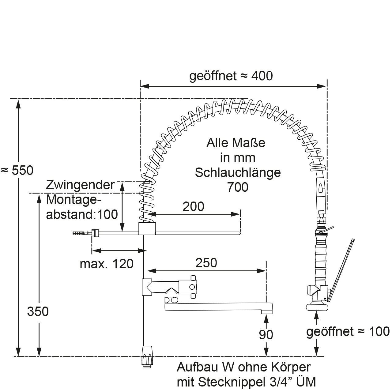 - rückschlagfreie Selbstschlussbrause mit Handgriff