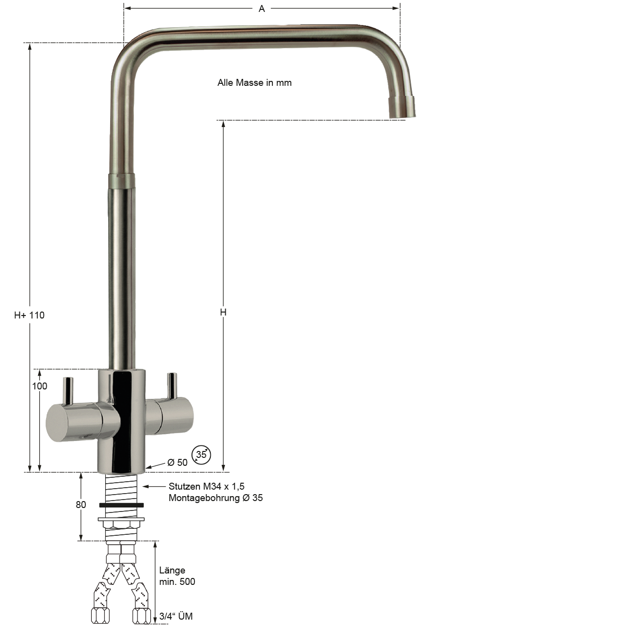 - Edelstahl-Schläuche mit 3/4" ÜM