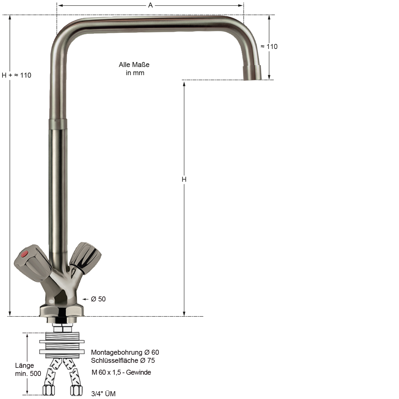 | Höhe bis Auslauf: | 380 mm |