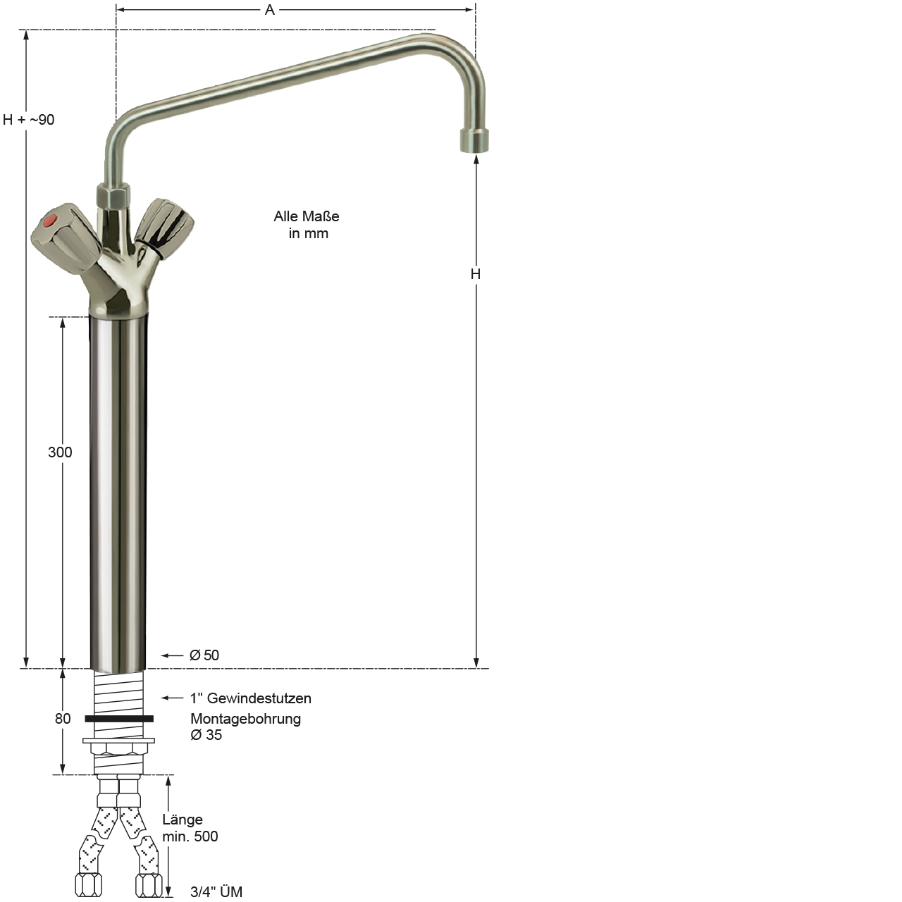 - Edelstahl-Schläuche mit 3/4" ÜM