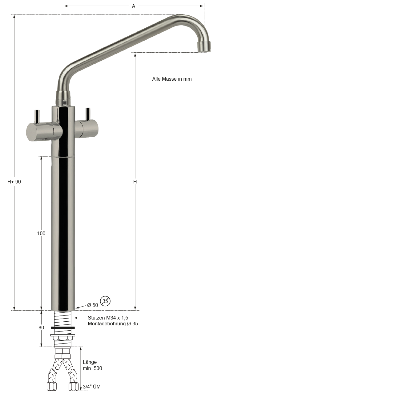 - Edelstahl-Schläuche mit 3/4" ÜM