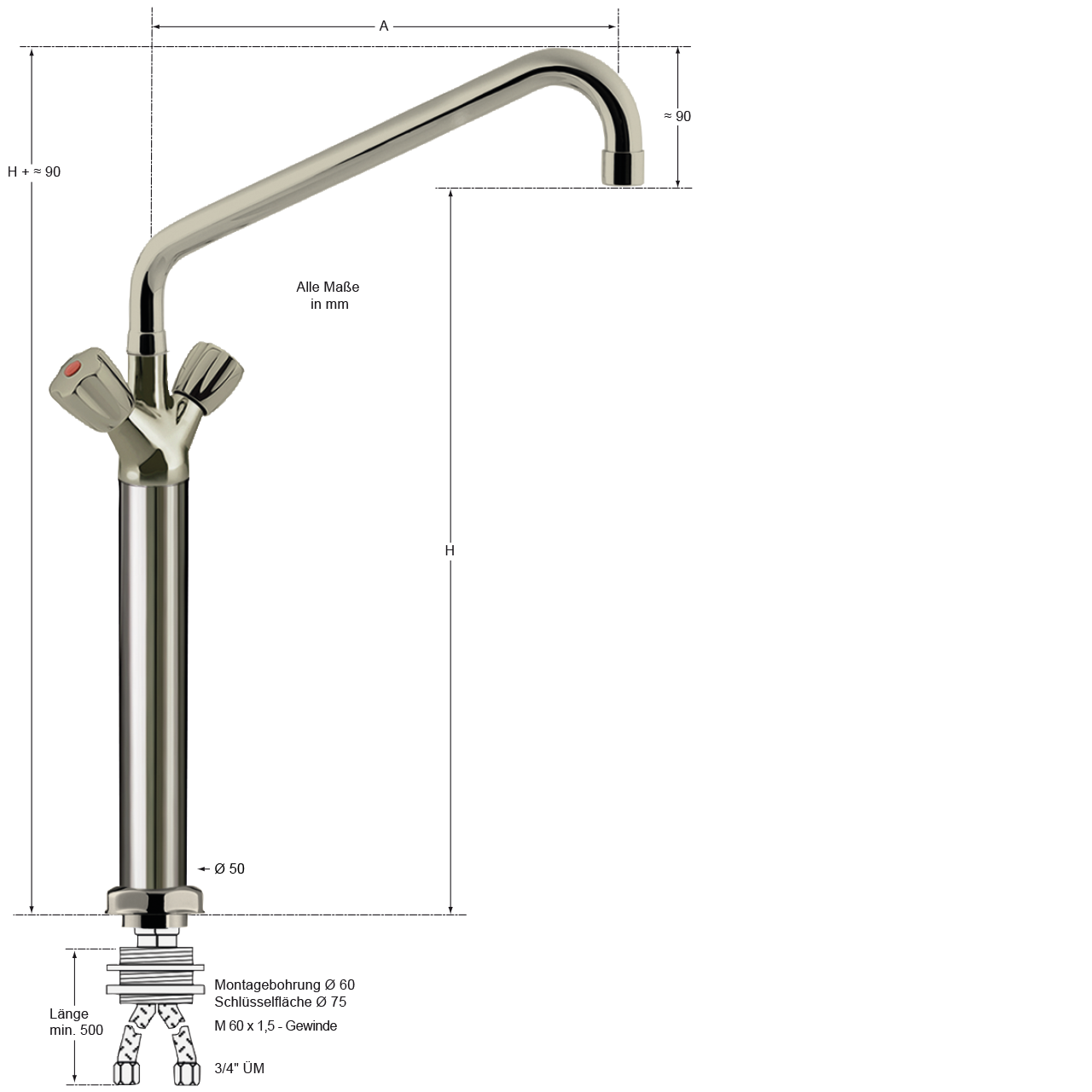 | Besonderheit: | Befestigung von oben, Schwenkbarer Auslauf |