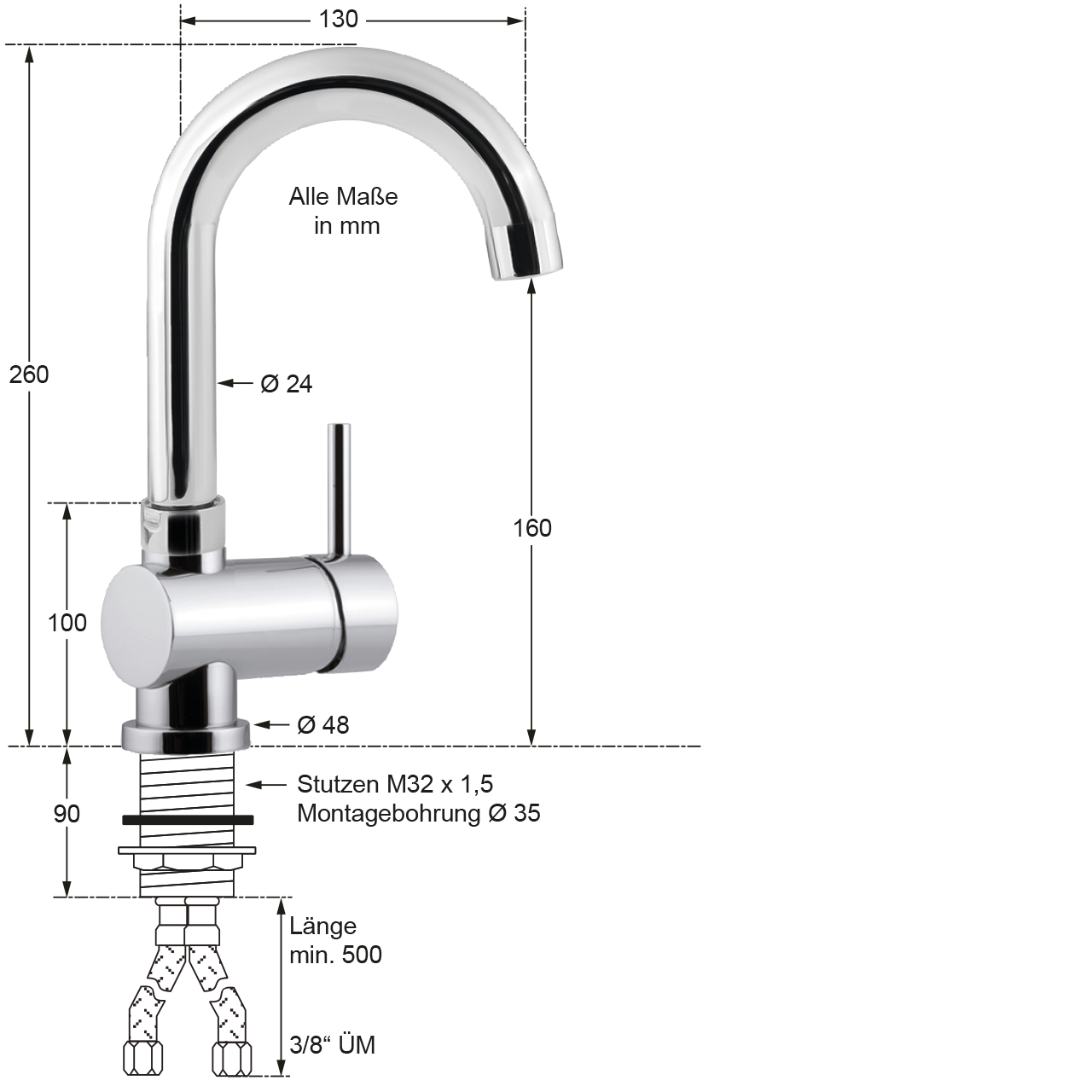 - Mit Schwenkauslauf 360° Ø 24 mm