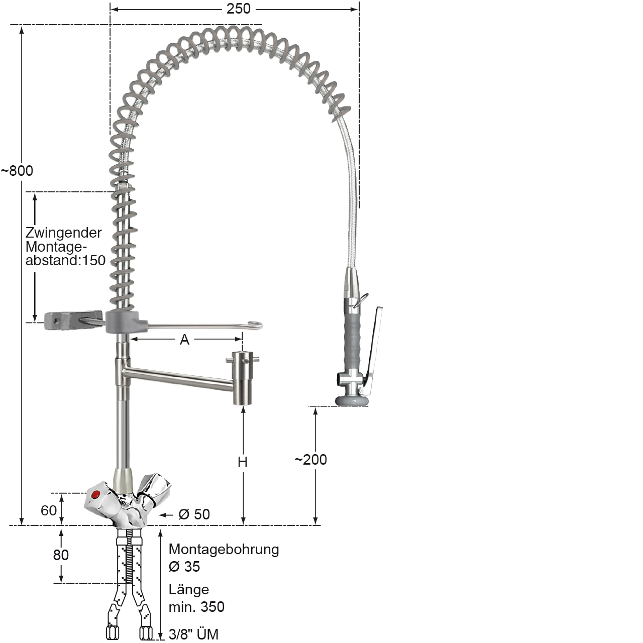 • rückschlagfreie Selbstschlussbrause mit Handgriff