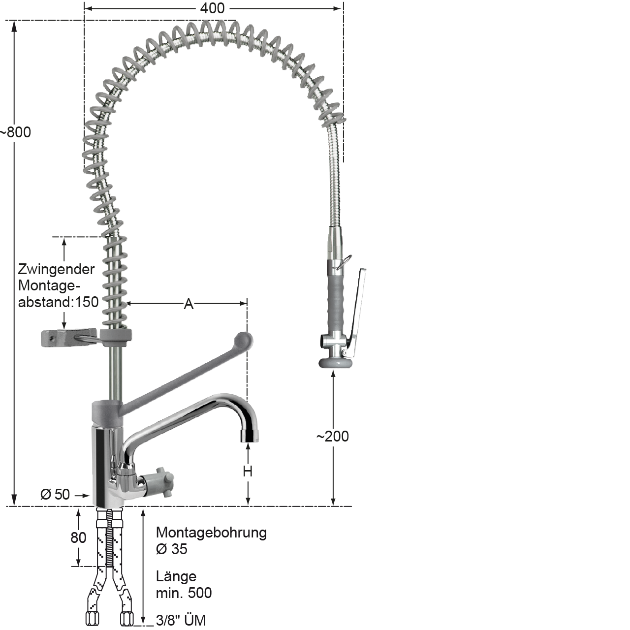 - Hochdruck-Edelstahlschlauch L 800 mm