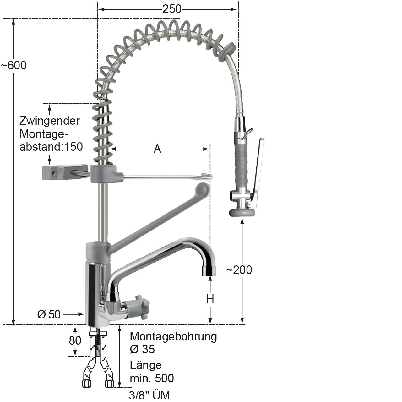 - Standrohr, Standrohrhalter, Brauseeinhängehaken, Federhalter, Tragfeder, kombiniert mit PA66