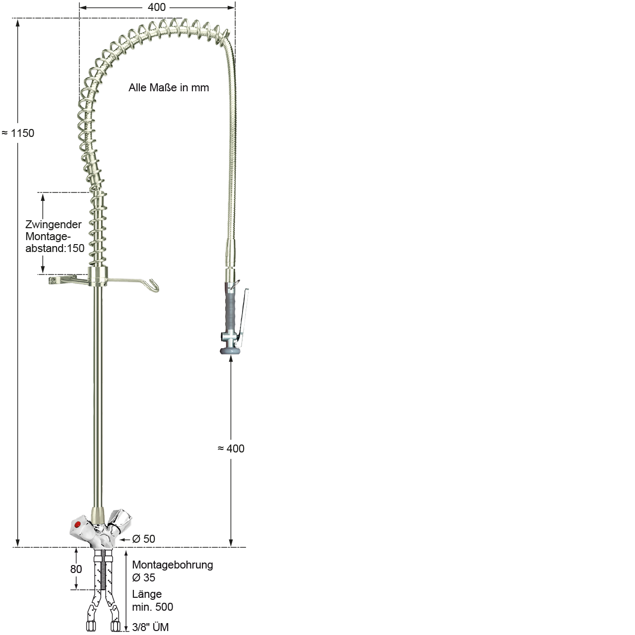 - rückschlagfreie Selbstschlussbrause mit Handgriff