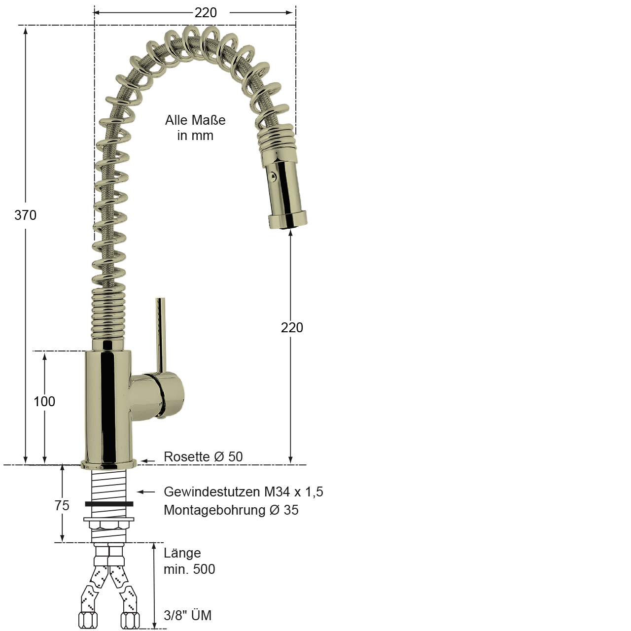 - Armaturenkörper, Feder mit Schlauch und ausziehbaren Strahlregler