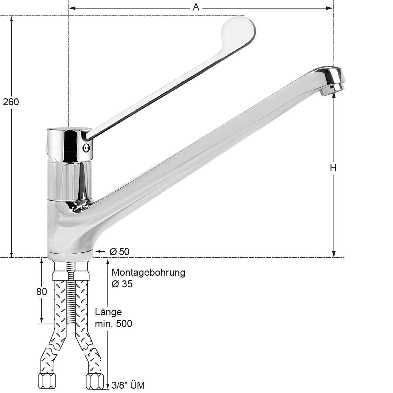 - Hochdruck-Edelstahlschlauch L 500 mm