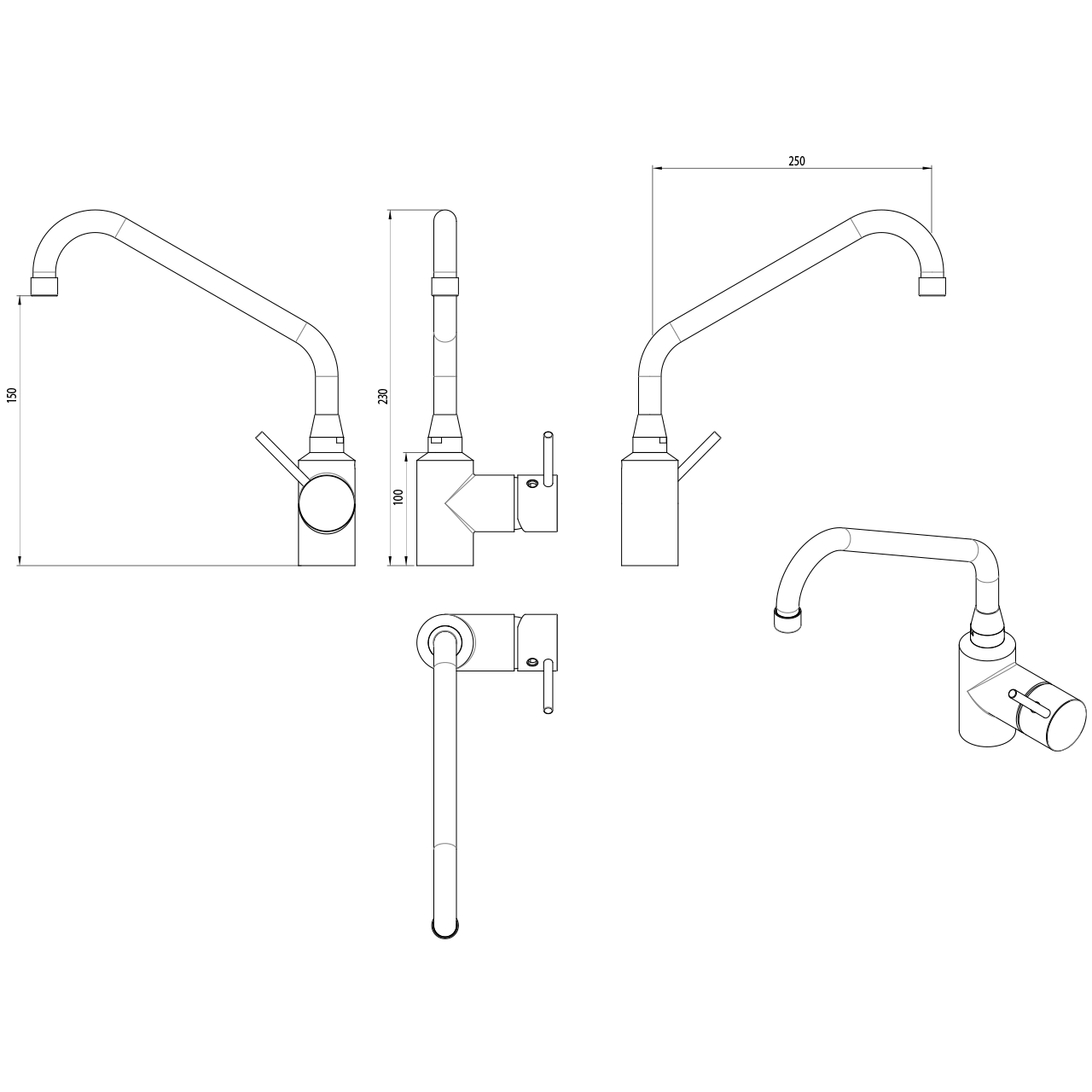 - Massiver Rohrschwenkauslauf Ø 25 mm 360°