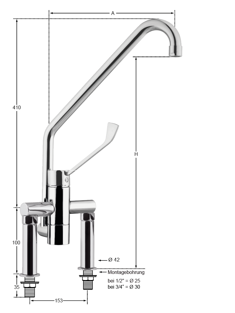 | Montagebohrung: | Abstand 153 mm - 2x Ø 30 mm |